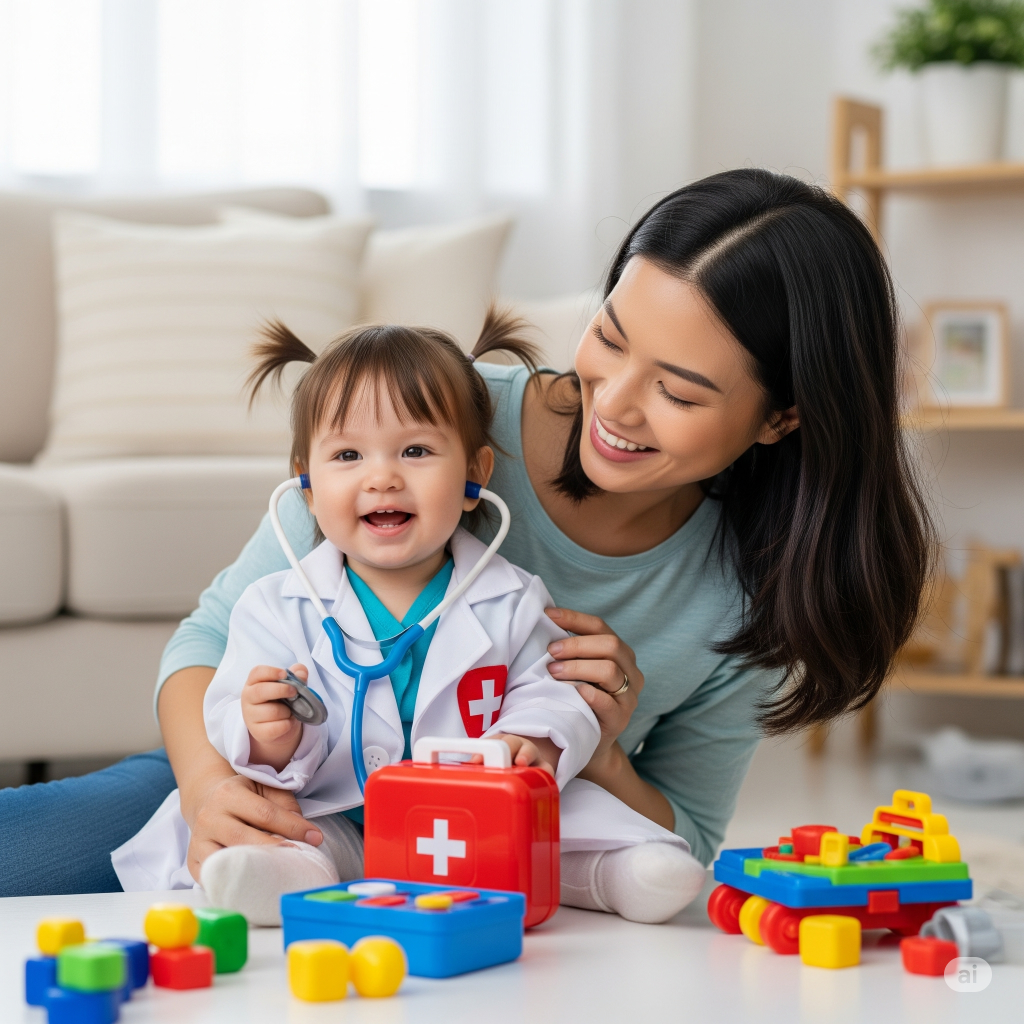 Let your child become a “消防员xiāo fáng yuán” (firefighter) or “医生yī shēng” (doctor). Add pretend scenarios and simple Chinese phrases.