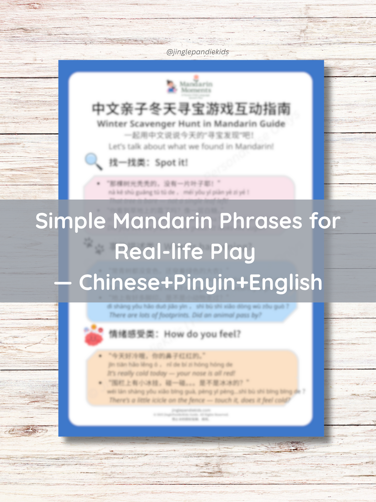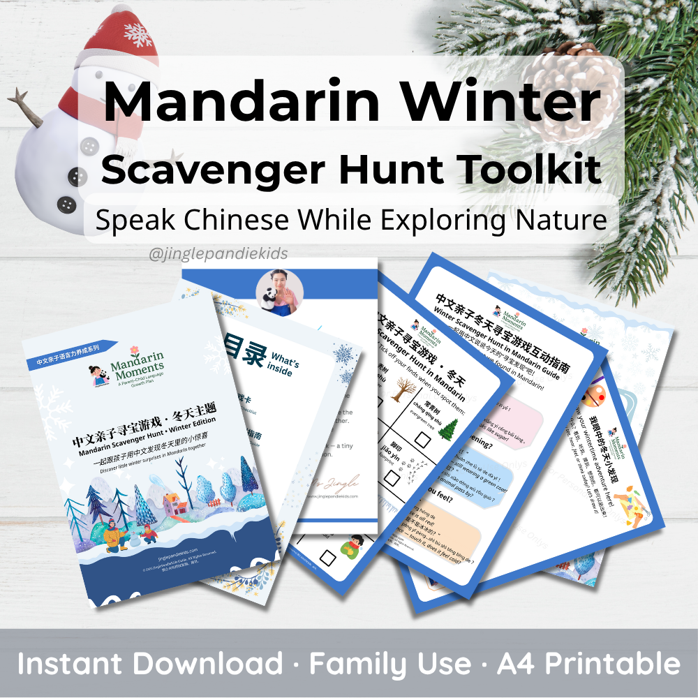 Bundle up and bring Mandarin along—discover the still beauty of winter with this complete play-based Mandarin Winter Scavenger Hunt Printable Toolkit.
