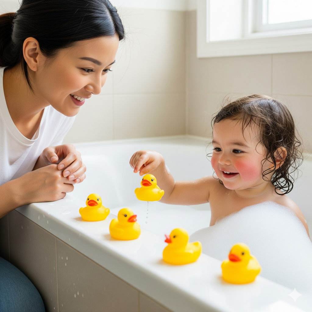 Daily repetition: Since bathtime happens every day, your child hears the same phrases again and again—perfect for language learning.